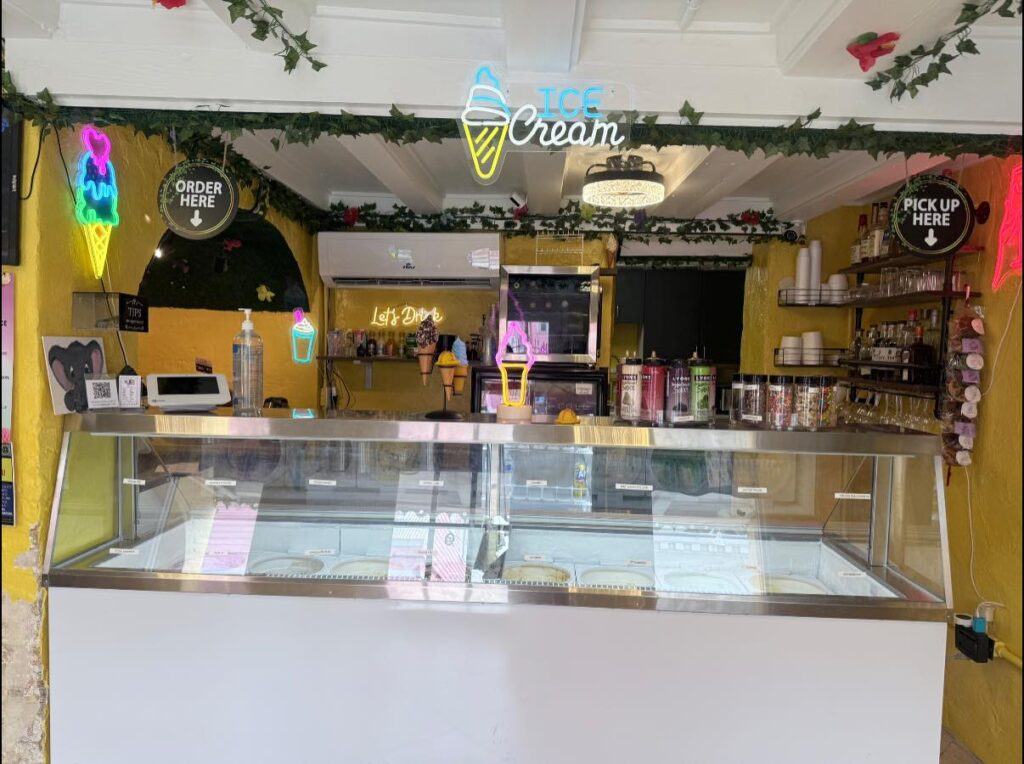 Come for the flavors, stay for the memories! Artisanal ice cream with big flavor featuring vegan options and island flavors. They also serve hot dogs, hamburgers and wraps alongside soft drinks, water and boozy milkshakes.